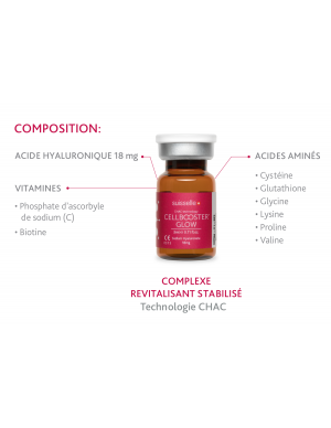 Le complexe revitalisant à l’acide hyaluronique est produit à l’aide d’une technologie CHAC brevetée. Il est composé d’acide hyaluronique stabilisé, d’acides aminés et de vitamines.