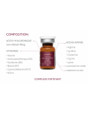 Le complexe fortifiant à l’acide hyaluronique est produit à l’aide d’une technologie CHAC brevetée. Il est composé d’acide hyaluronique stabilisé, d’acides aminés et de vitamines.